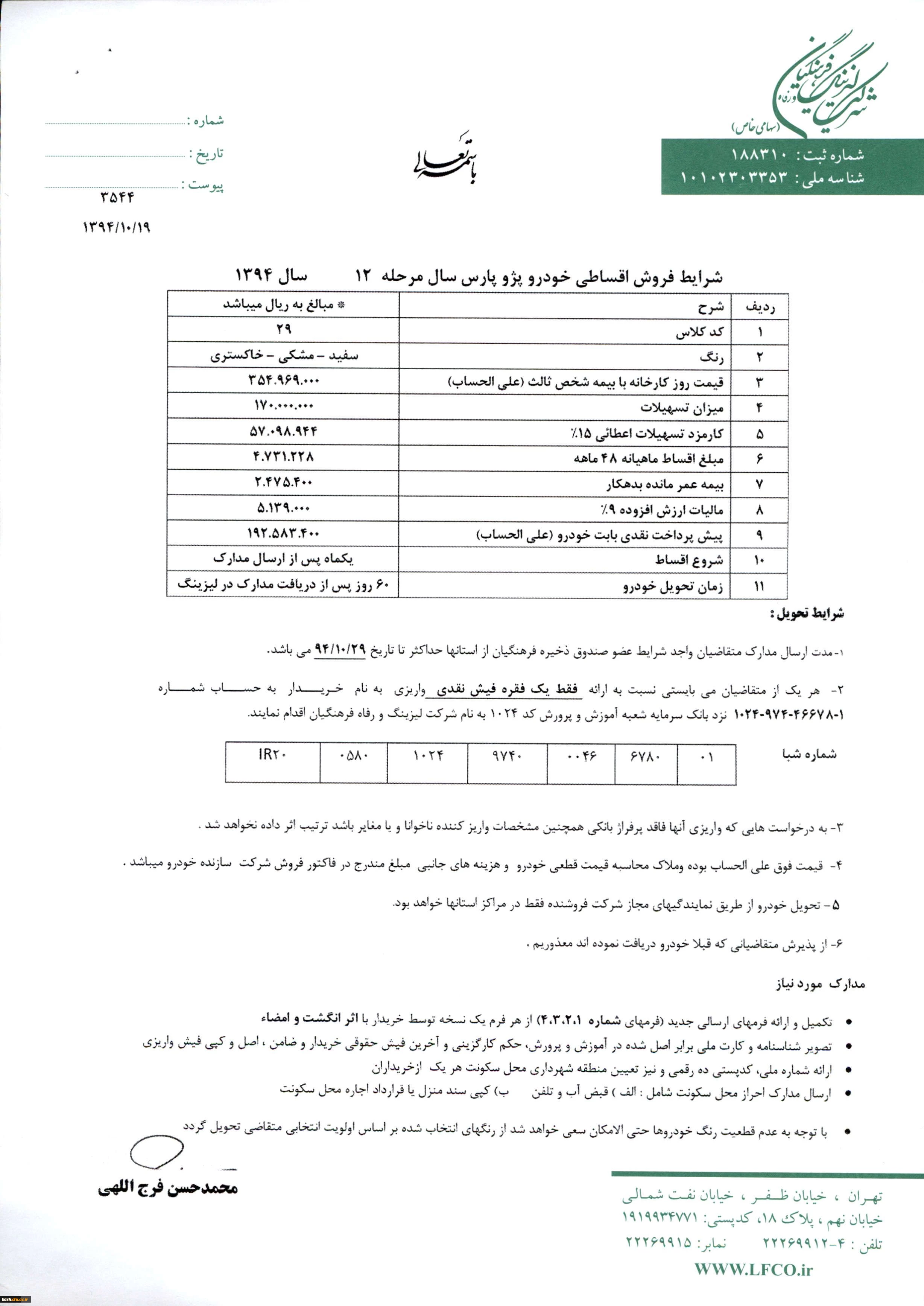 اطلاعیه مرحله دوازدهم اعطای تسهیلات خرید خودرو ( لیزینگ فرهنگیان)