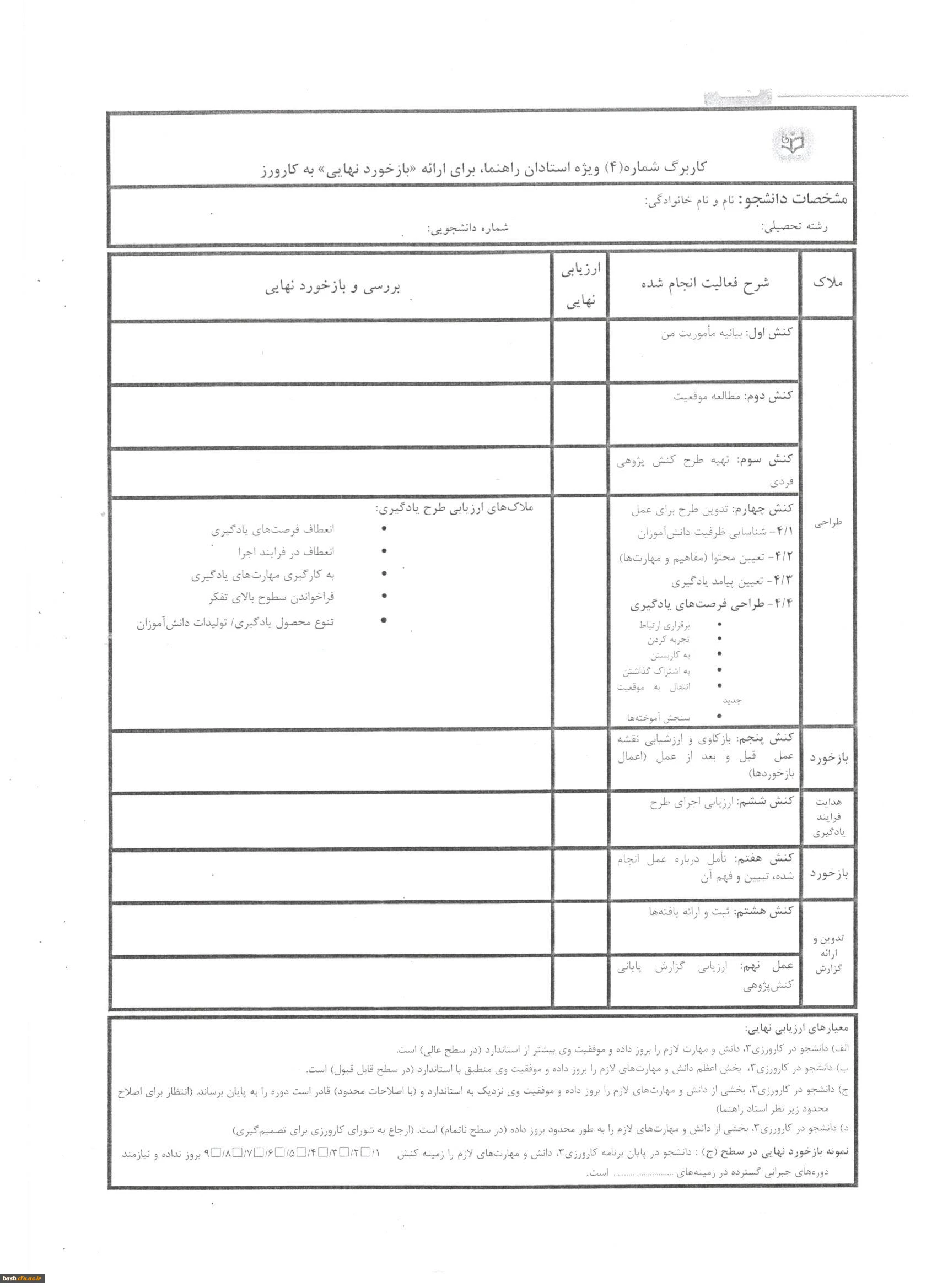 امتیاز دهید : فرم ارزیابی کارورزی 3 ویژه مدرسان کارورز (فرم اصلاح شده) 5 دوشنبه 14 دی 1394 ساعت 12:08