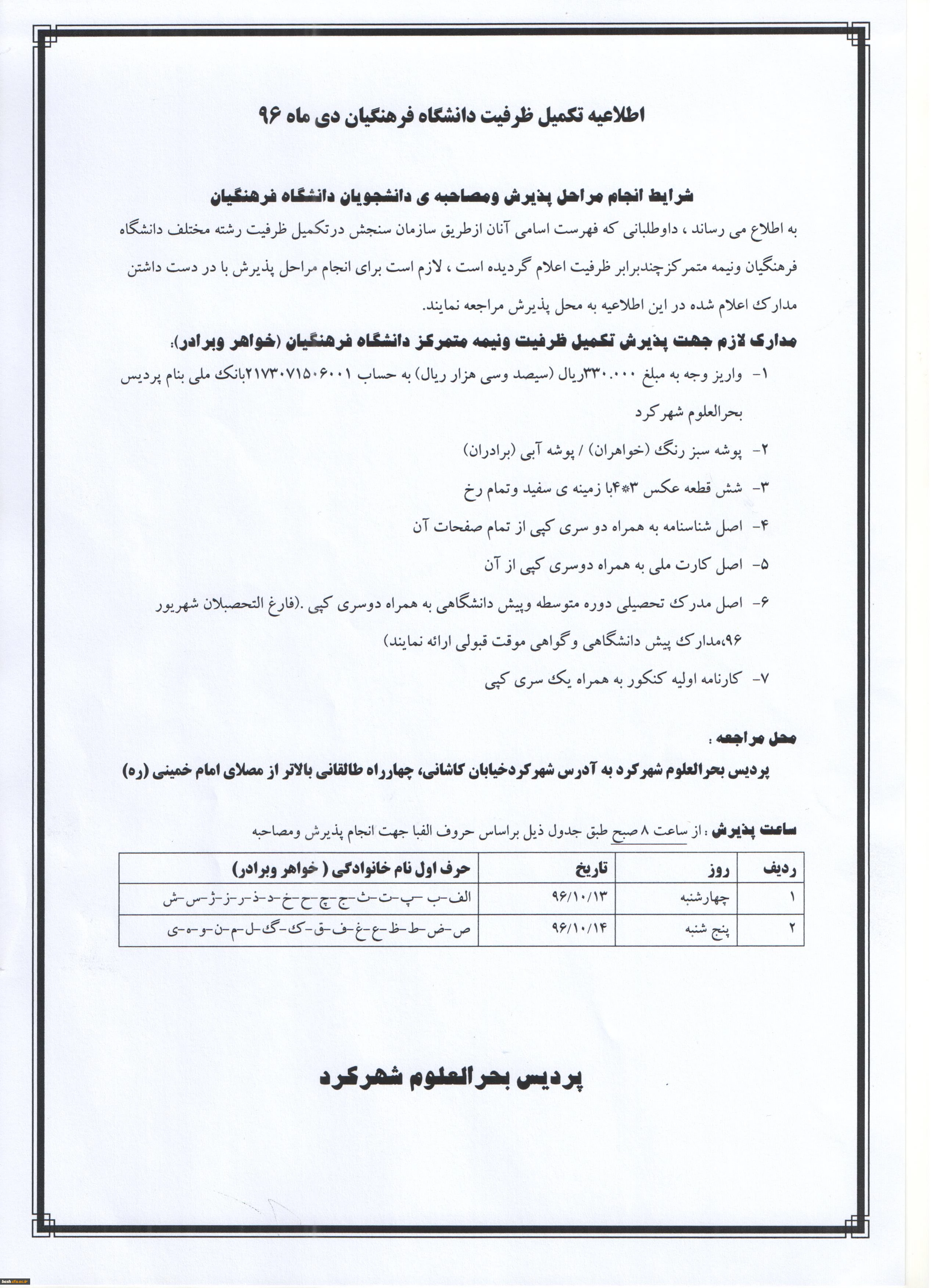 امتیاز دهید : اطلاعیه مصاحبه تخصصی تکمیل ظرفیت دانشگاه فرهنگیان دی ماه 1396 2 یکشنبه 10 دی 1396 ساعت 10:20