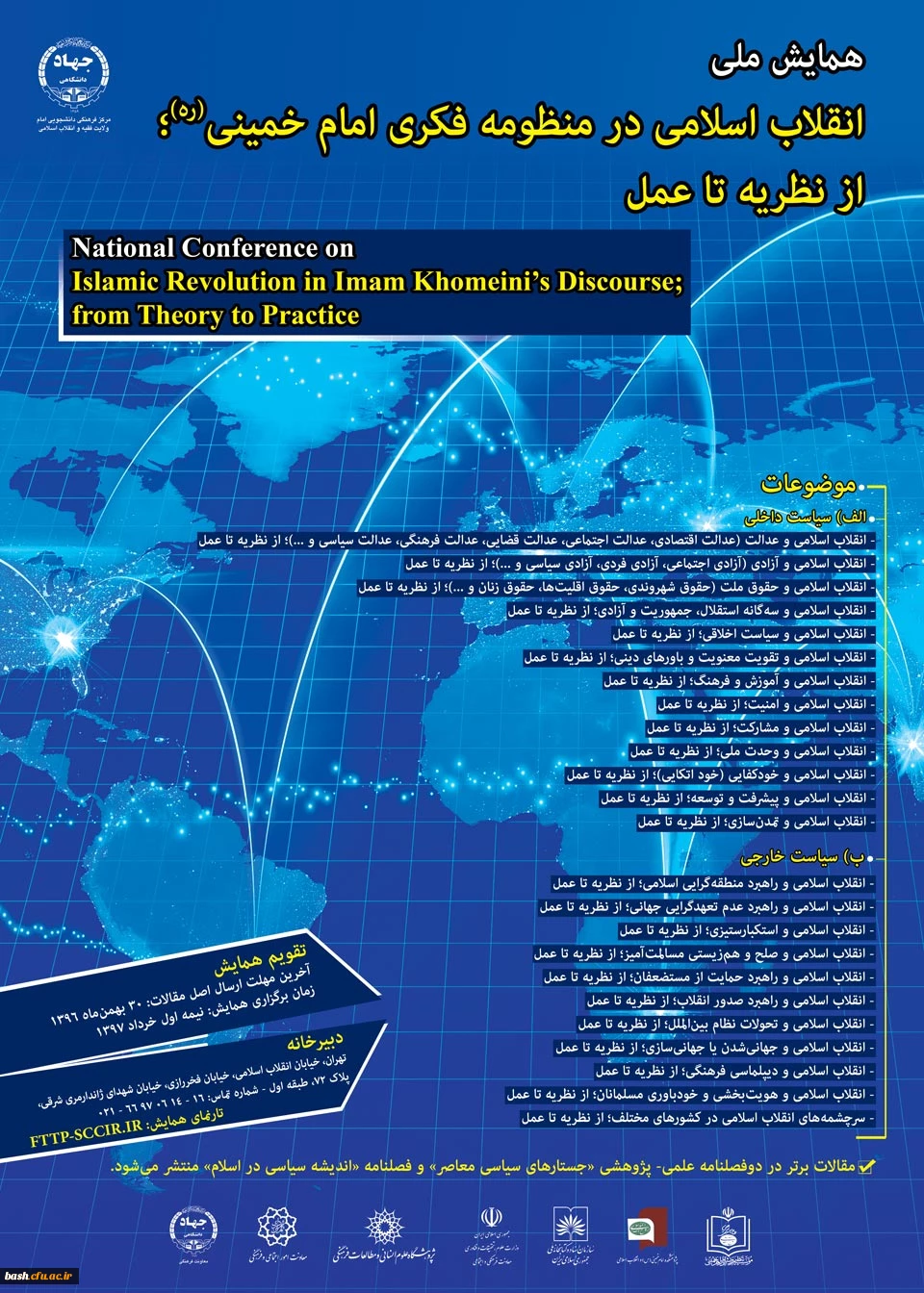 امتیاز دهید : همایش علمی انقلاب اسلامی در منظومه ی فکری امام خمینی ره از نظریه تا عمل چهارشنبه 4 بهمن 1396 ساعت 9:52