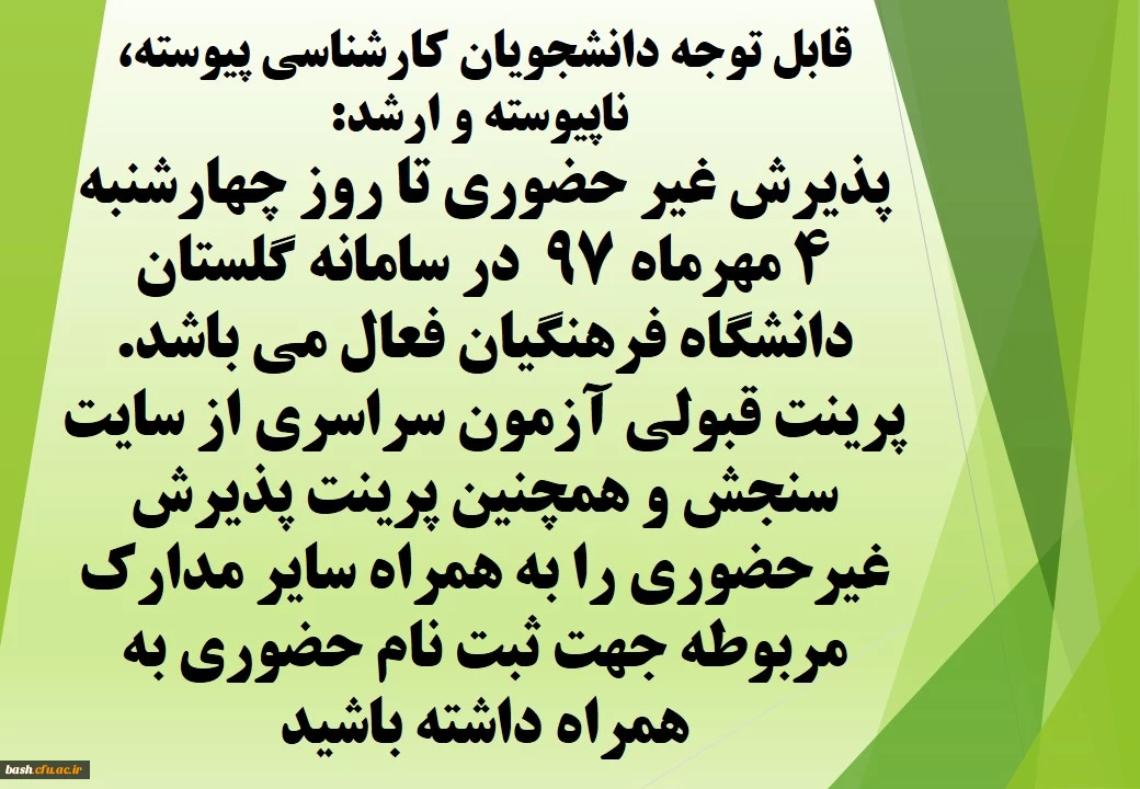 اطلاعیه مهم ویژه دانشجویان ورودی 97