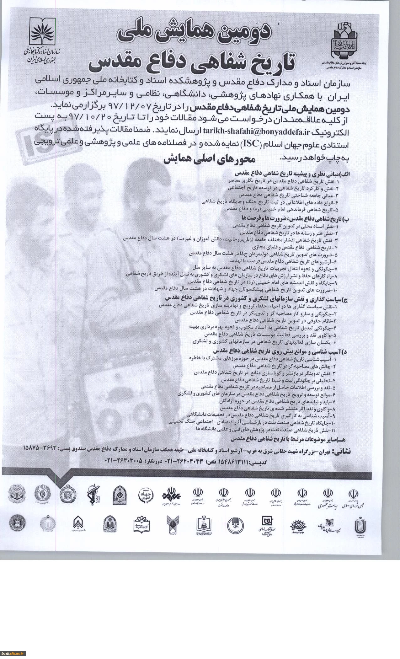 دومین همایش ملی تاریخ شفاهی دفاع مقدس با همکاری سازمان اسناد و مدارک دفاع مقدس و پژوهشکده اسناد و کتابخانه ملی دفاع مقدس