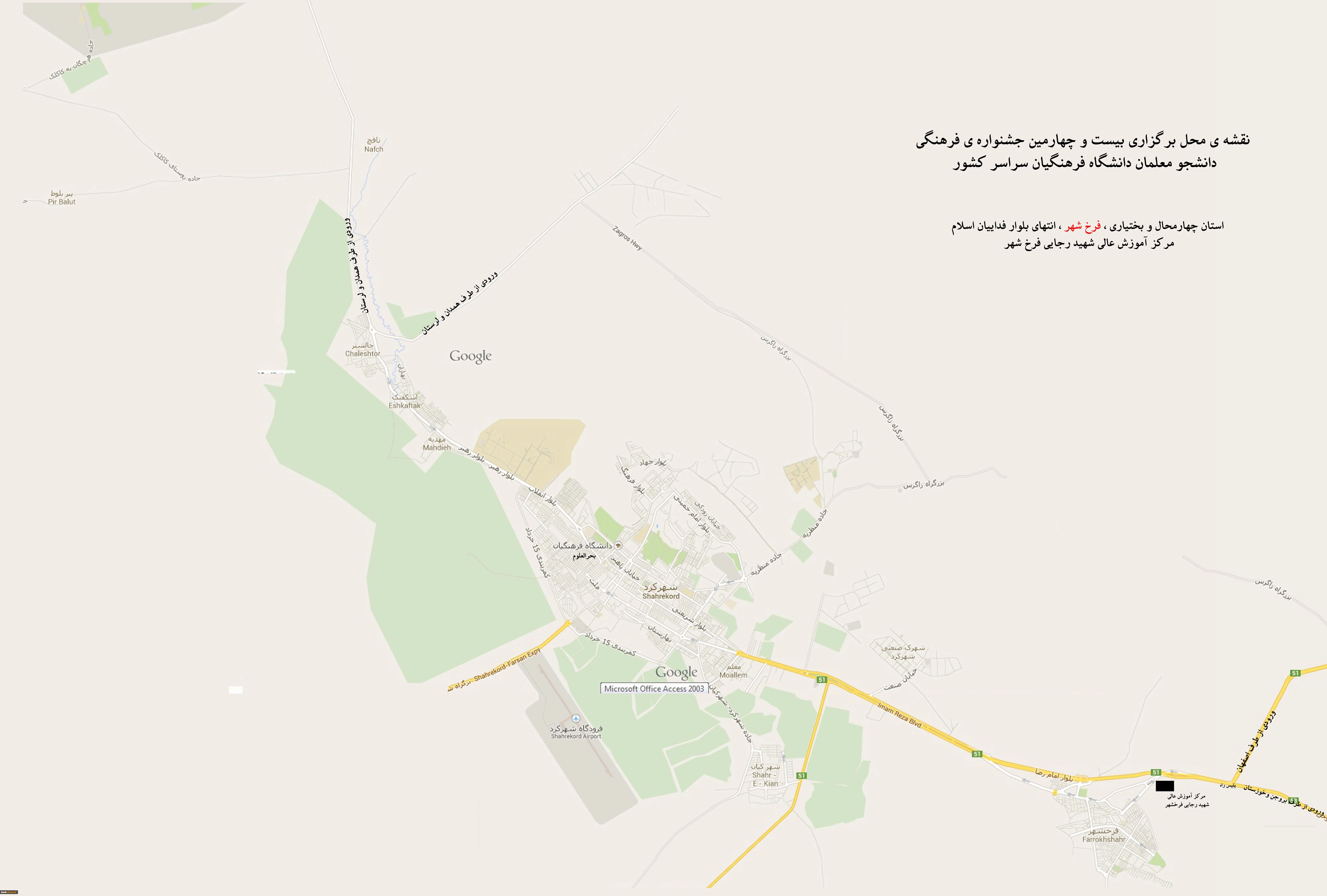 نقشه ی محل برگزاری بیست و چهارمین جشنواره فرهنگی دانشجو معلمان دانشگاه فرهنگیان سراسر کشور 2