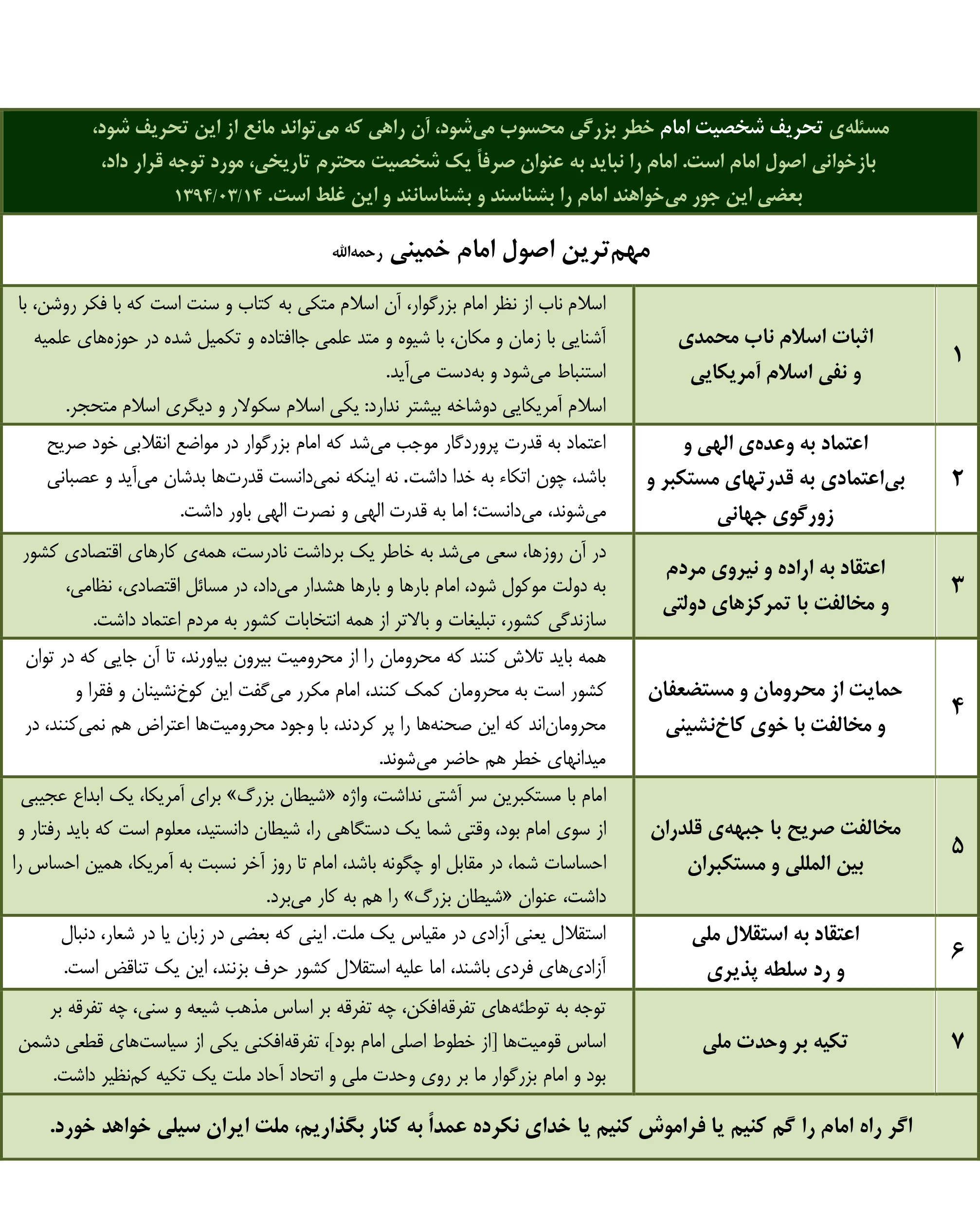هفت اصل از مهم ترین اصول اندیشه امام خمینی رحمه الله در بیانات حضرت آیت الله خامنه ای